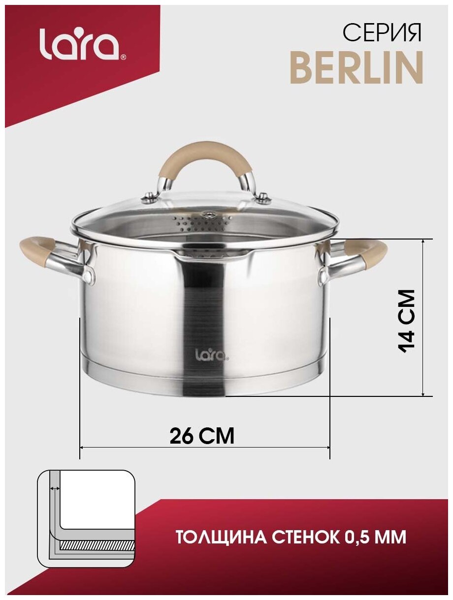 Кастрюля LARA Берлин, 2.4 л, сталь