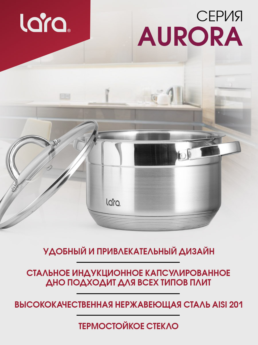 Кастрюля LARA LR02-403 Aurora, 4,8л, d 22см, из нержавеющей стали, для всех типов плит