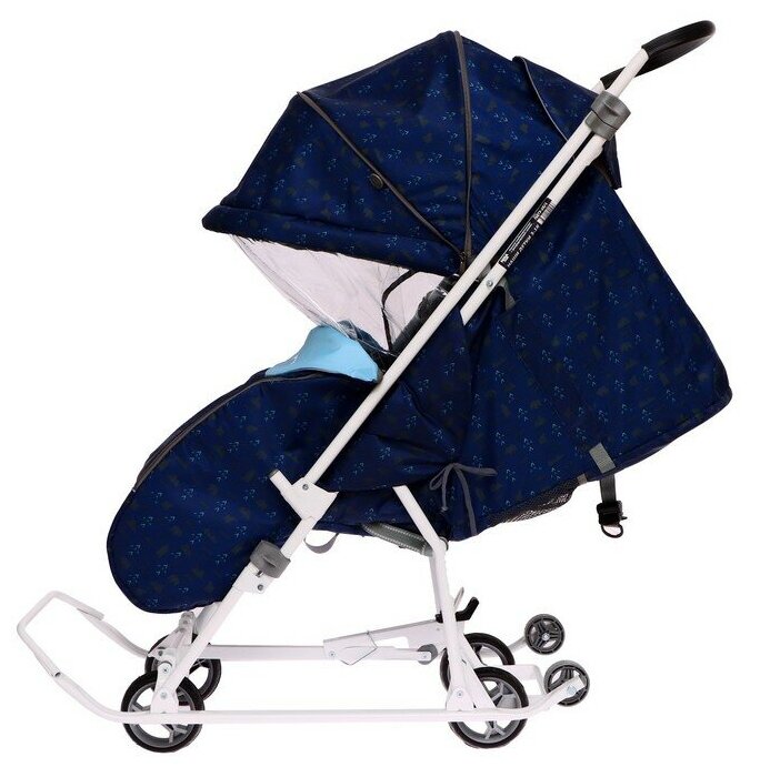 Санки-коляска Nika складные детские "Наши Детки 3-1К", принт голубой с облачками, перекидная ручка, облегченный каркас Ника с бампером выдвижные колеса, возраст 1+ / 1 шт