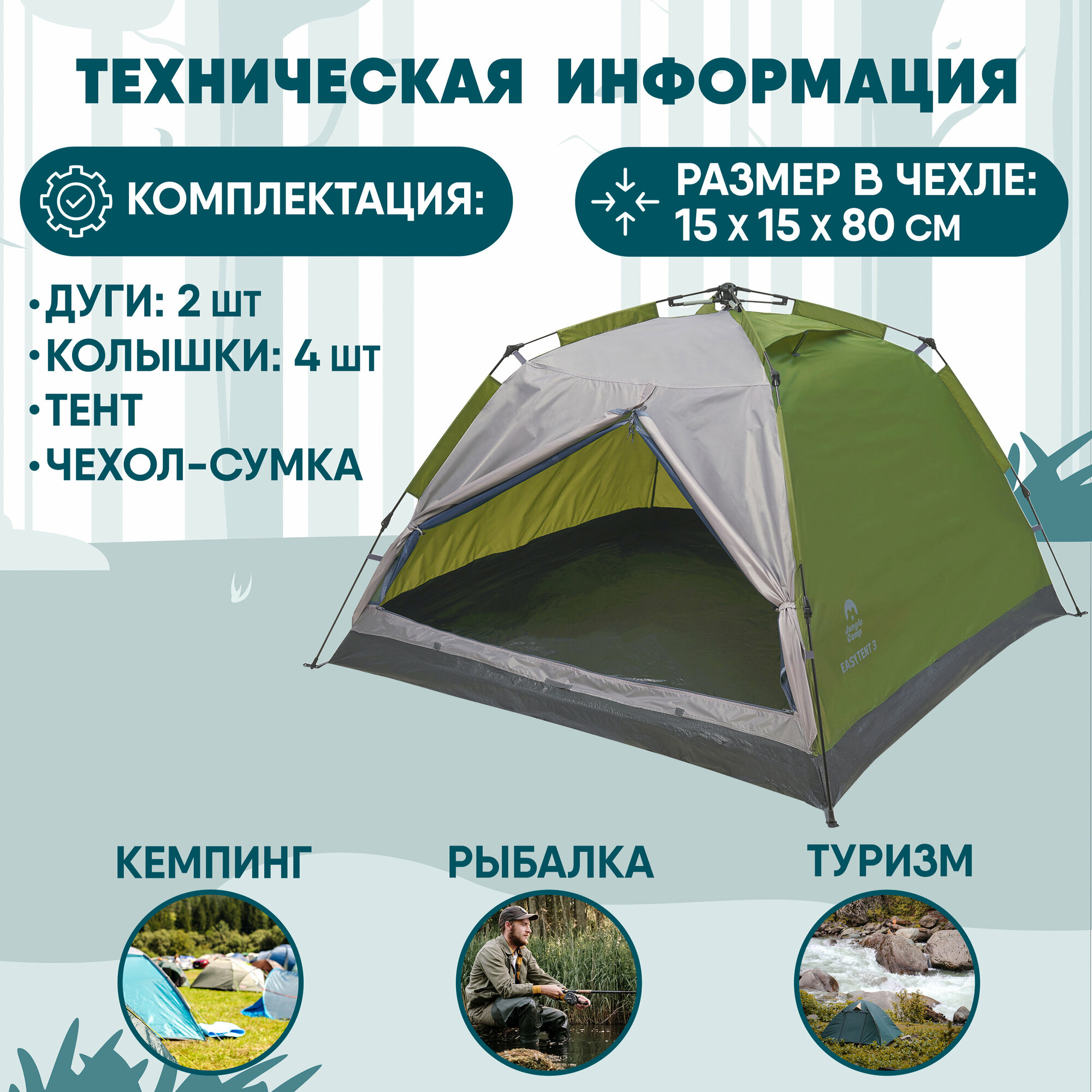 Палатки Палатка трехместная JUNGLE CAMP Easy Tent 3, цвет: зеленый/серый