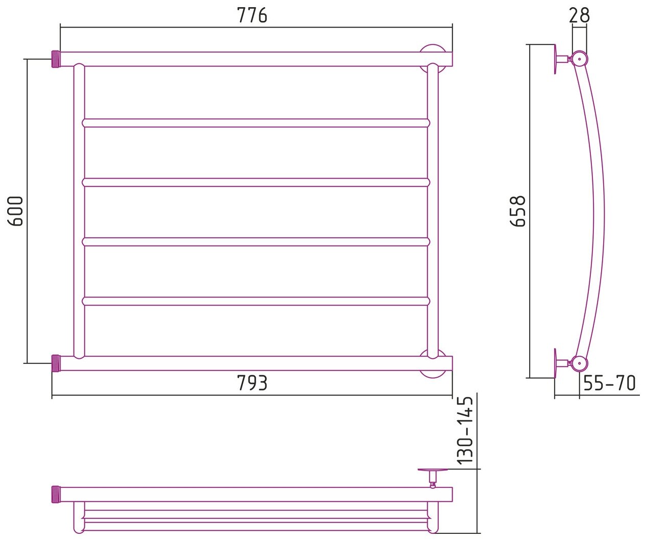 Полотенцесушитель Полотенцесушитель Стилье Минор 0602 600х800 4 Г 00602-6080