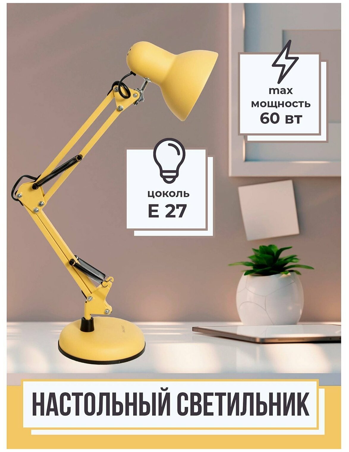 Настольный светильник Ultra LIGHT МТ2001 сменная лампа, Е27, 60 Вт Основание + струбцина, Желтая ваниль