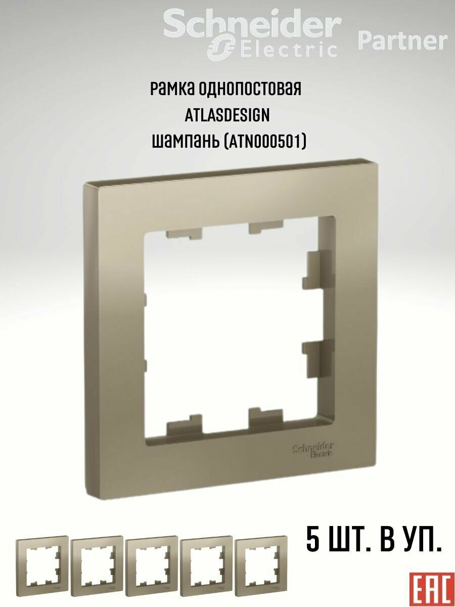 Розетки Systeme (Schneider) Electric ATLASDESIGN 1-постовая рамка, шампань ATN000501 (комплект 5 штук)
