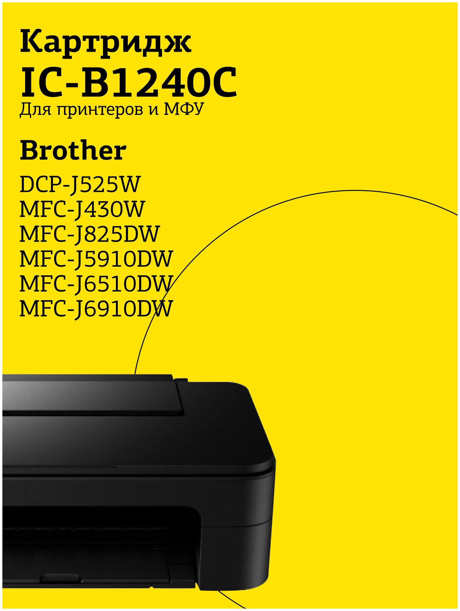 Лучшие цены. Струйный картридж T2 IC-B1240C для принтеров Brother, голубой (cyan). Подходит для принтеров: Brother DCP-J525W, MFC-J430W, MFC-J825DW, MFC-J5910DW, MFC-J6510DW, MFC-J6910DW. Магазины в вашем городе.