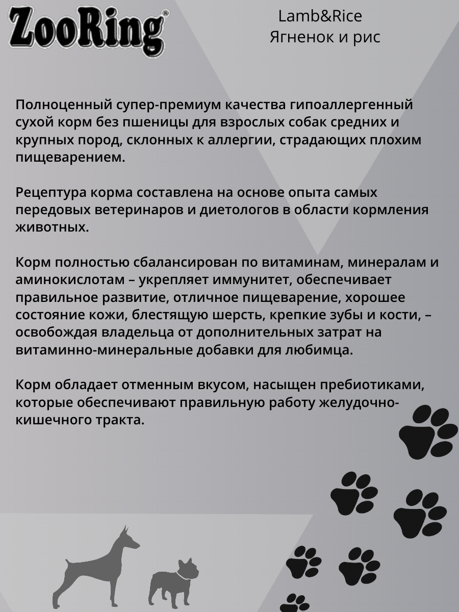 ZooRing Корм сухой для собак Lamb Rice Ягненок и рис, 10кг