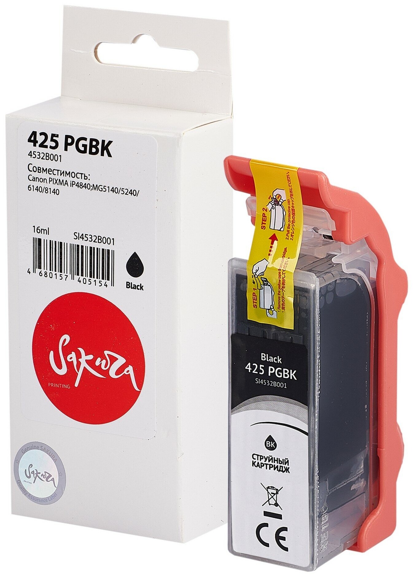Картридж 4532B001 (425 PG Black) для Canon, струйный, черный, 16 мл., 360 страниц, Sakura