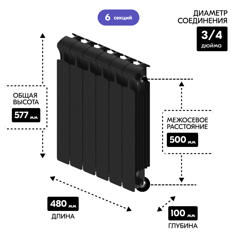 Rifar Monolit 500 - 6 секций, цвет Титан (серый) боковое подключение 10 920 ₽ Подробнее