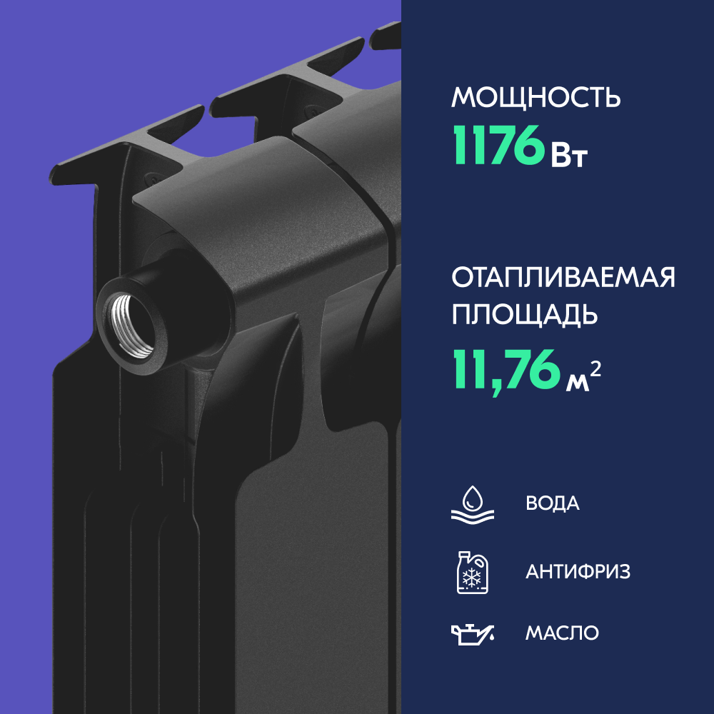 Rifar Monolit 500 - 8 секций, цвет Антрацит (чёрный) боковое подключение 14 560 ₽ Подробнее