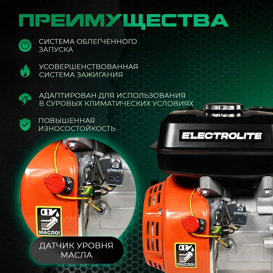 Двигатели Двигатель Бензиновый / Двигатель на мотоблок ELECTROLITE LT 190F ( 15 л.с. Вал 25,4 мм, ручной стартер )