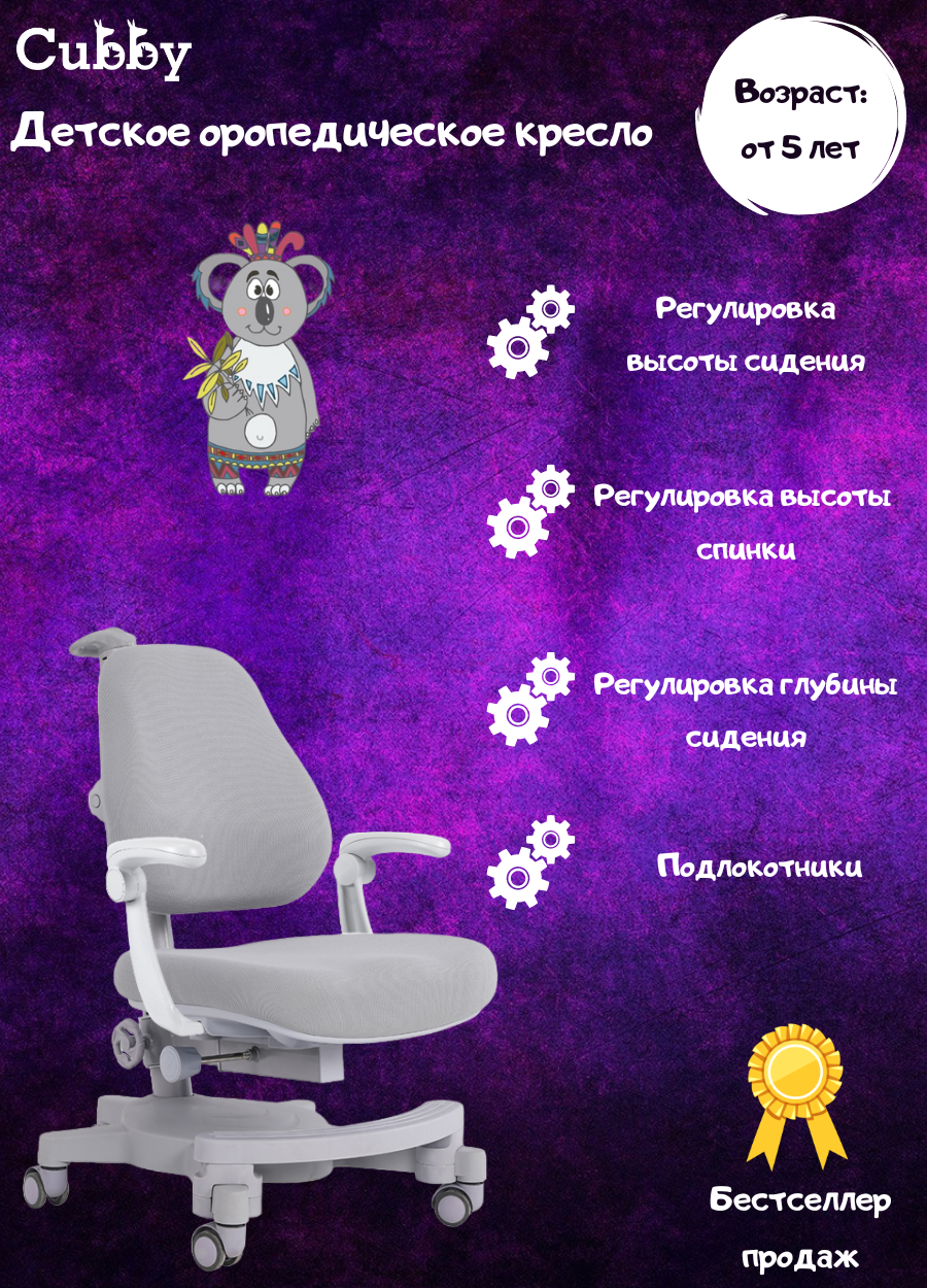 Компьютерные кресла Детское кресло Solidago Grey с подлокотниками