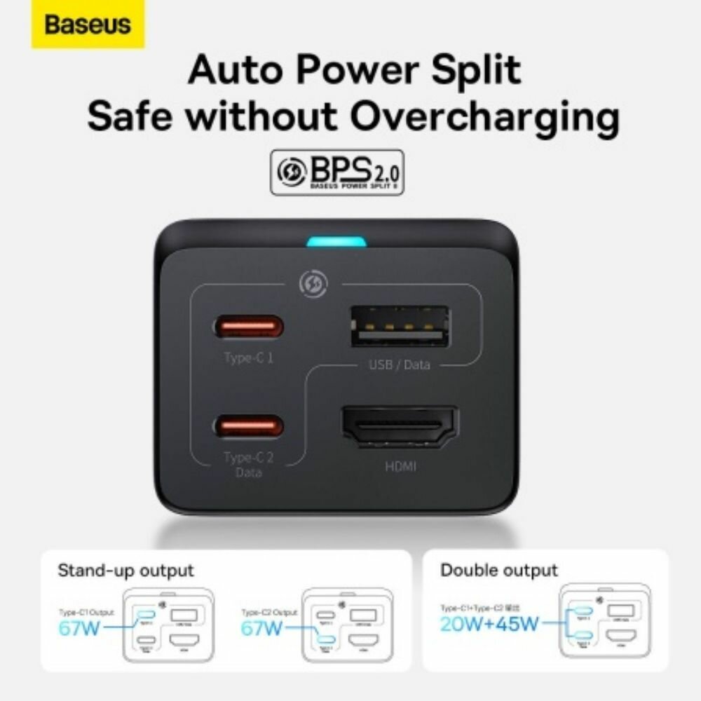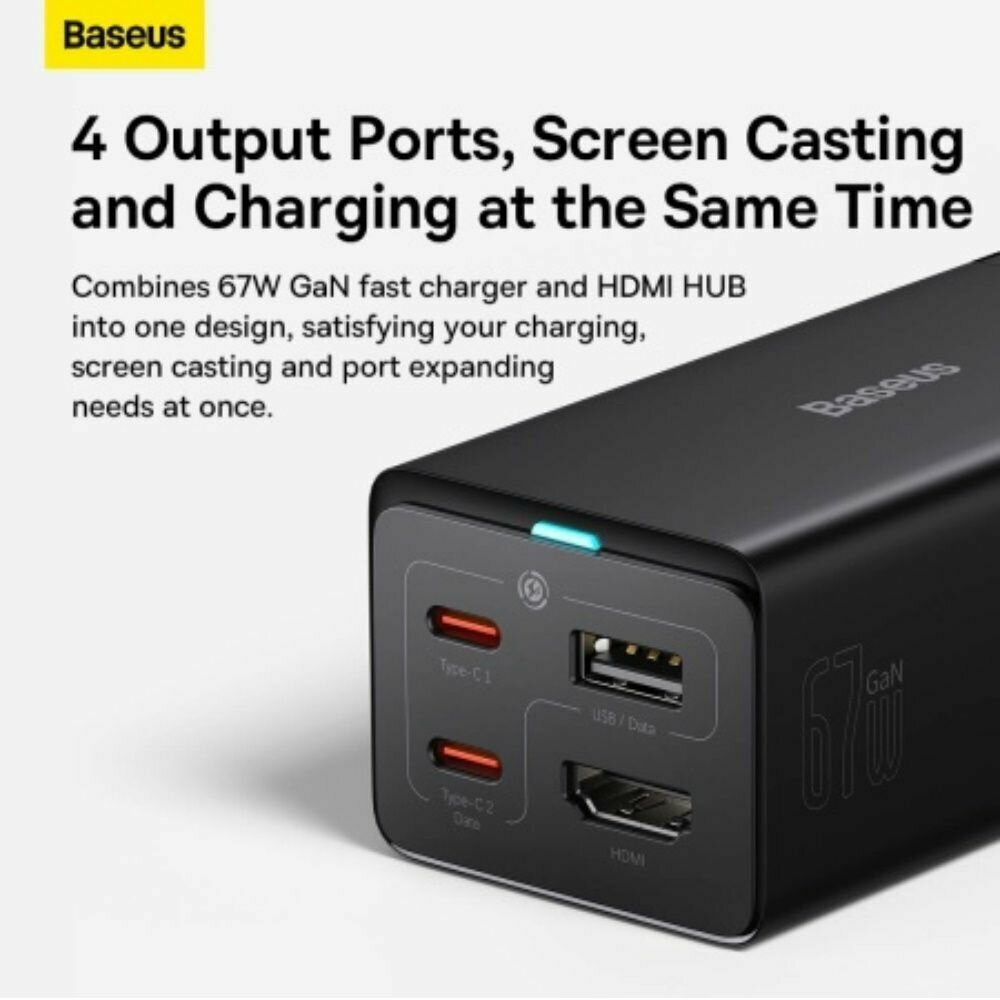 Зарядки для гаджетов Сетевое зарядное устройство Baseus GaN5 Pro Desktop Fast Charger 1U+2C+HDMI 67W with 1.5m power cord EU с кабелем Type-C - Type-C 100W (20V/5A) 1m (CCGP110201) Черное