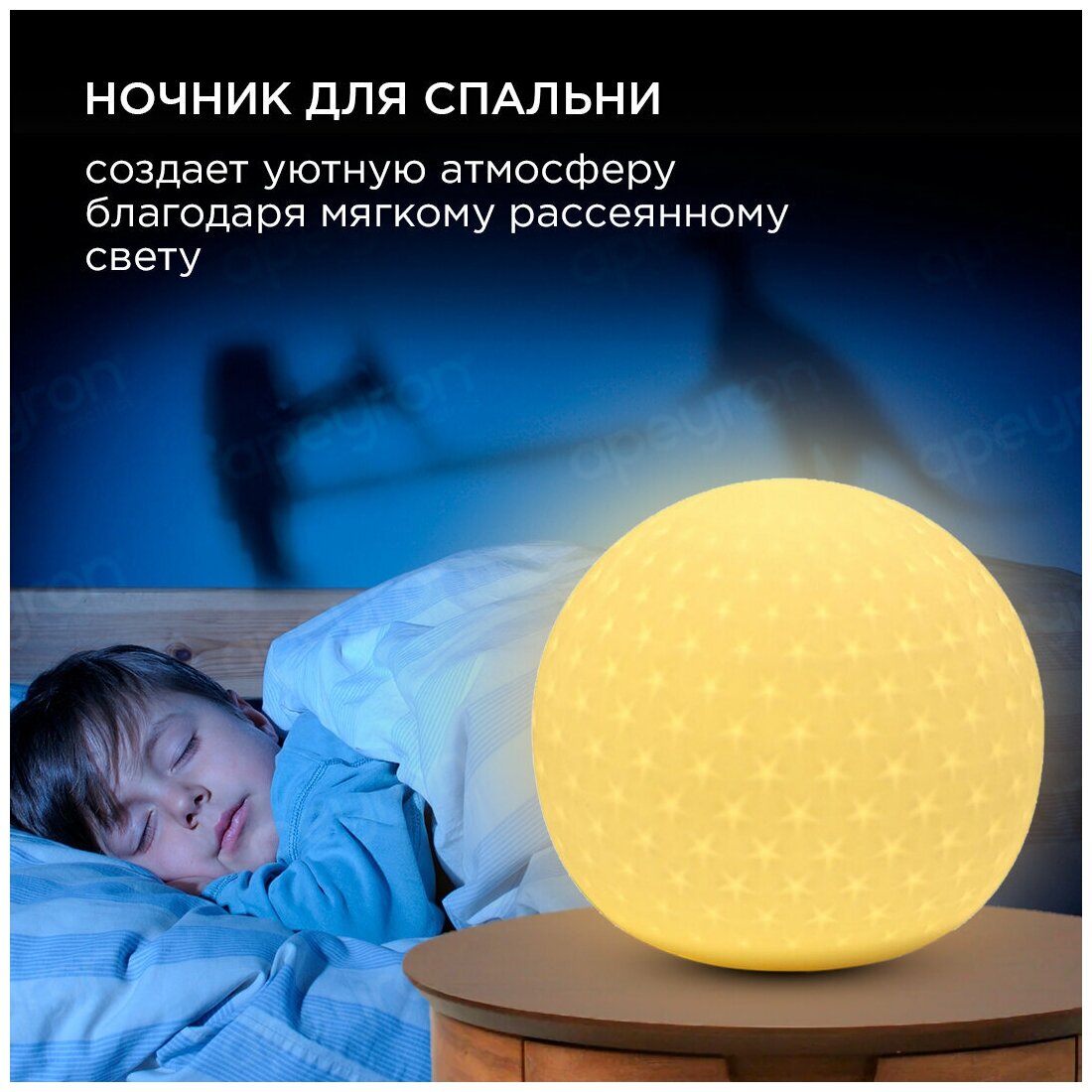 Декоративный светодиодный керамический светильник на батарейках LR44 / Компактная настольная лампа для детской комнаты в виде шара безопасная для глаз/ LED ночник-светильник для детей 12-082, Шарик, 10х10х8.6 см