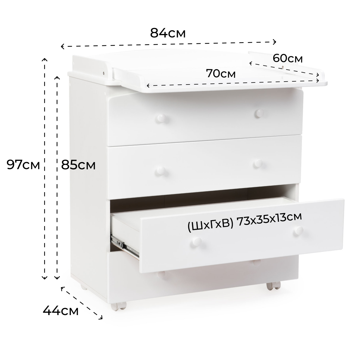 | Дополнительно | раскладной пеленальный стол, поворотные колеса |