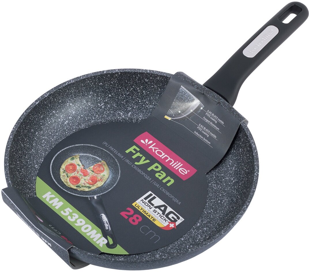 Сковородка Сковорода 28 см. из литого алюминия Kamille KM 5390MR с покрытием ILAG чёрный мрамор (28 см. / черный)