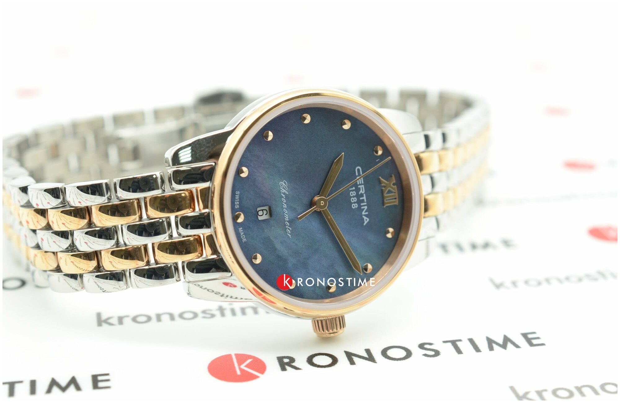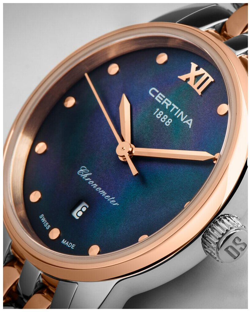 Лучшие цены. Швейцарские женские часы Certina DS-8 Lady C033.051.22.128.00 из коллекции DS-8 станут выражением утончённого вкуса владелицы и украсят образ. Изысканный аксессуар – лучший вариант для делового костюма или вечернего наряда. Эффектный перламутровый циферблат тёмно-синего цвета дополнен незатейливым узором и золотистой часовой разметкой. Часы привлекают не только дизайном, но и абсолютной точностью: швейцарский кварцевый механизм ETA G10.962 {=templateTooltip "precidrive" "Precidrive™". Магазины в вашем городе.