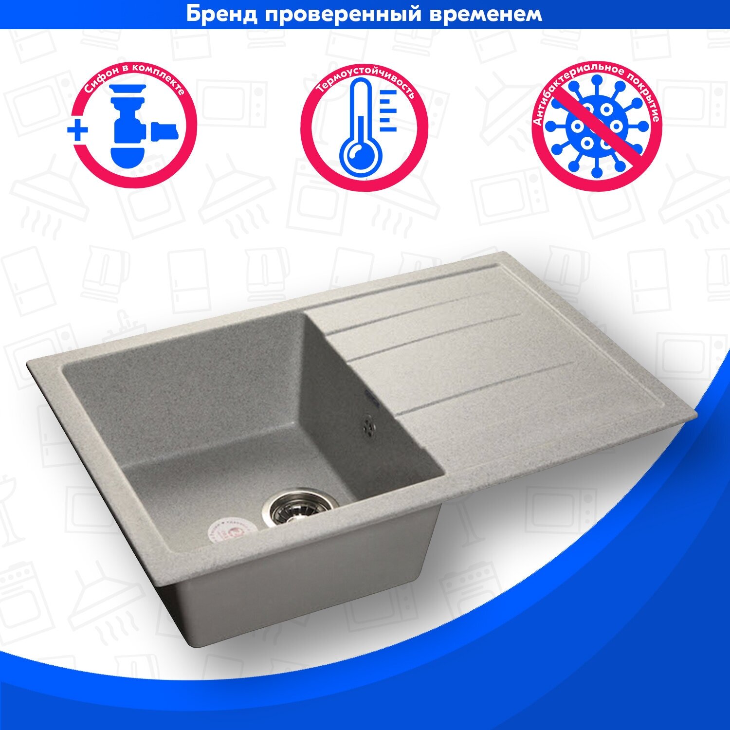 Кухонная мойка GRANFEST QUADRO 780L 1-чаша+крыло 770*495мм серый