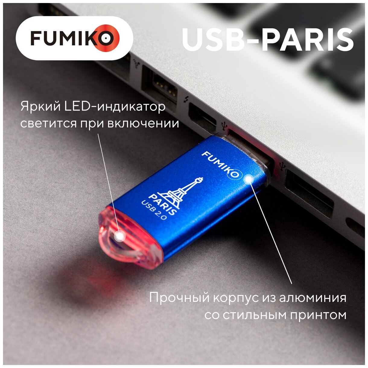 Флешка 16GB USB2 Fumiko Paris, синяя