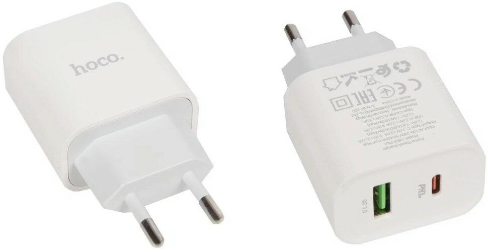 Сетевое зарядное устройство, 1 USB 3.0 QC+1 PD 20W (C80A Plus), HOCO, белый