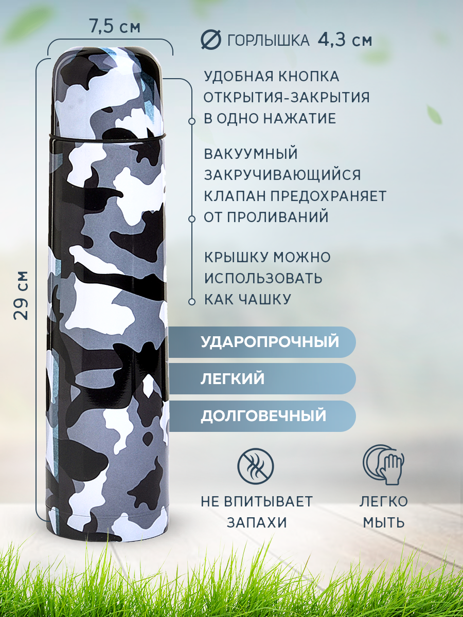 Лучшие цены. Термос MAYER&BOCH выполнен из качественной нержавеющей стали, которая не вступает в реакцию с содержимым термоса и не изменяет вкусовых качеств напитка. Двойная стенка из нержавеющей стали сохраняет температуру на срок до 24-х часов. Вакуумный закручивающийся клапан предохраняет от проливаний, а удобная кнопка-дозатор избавит от необходимости каждый раз откручивать крышку. Крышку можно использовать как чашку. Цветное покрытие обеспечивает защиту от истирания корпуса. Магазины в вашем городе.