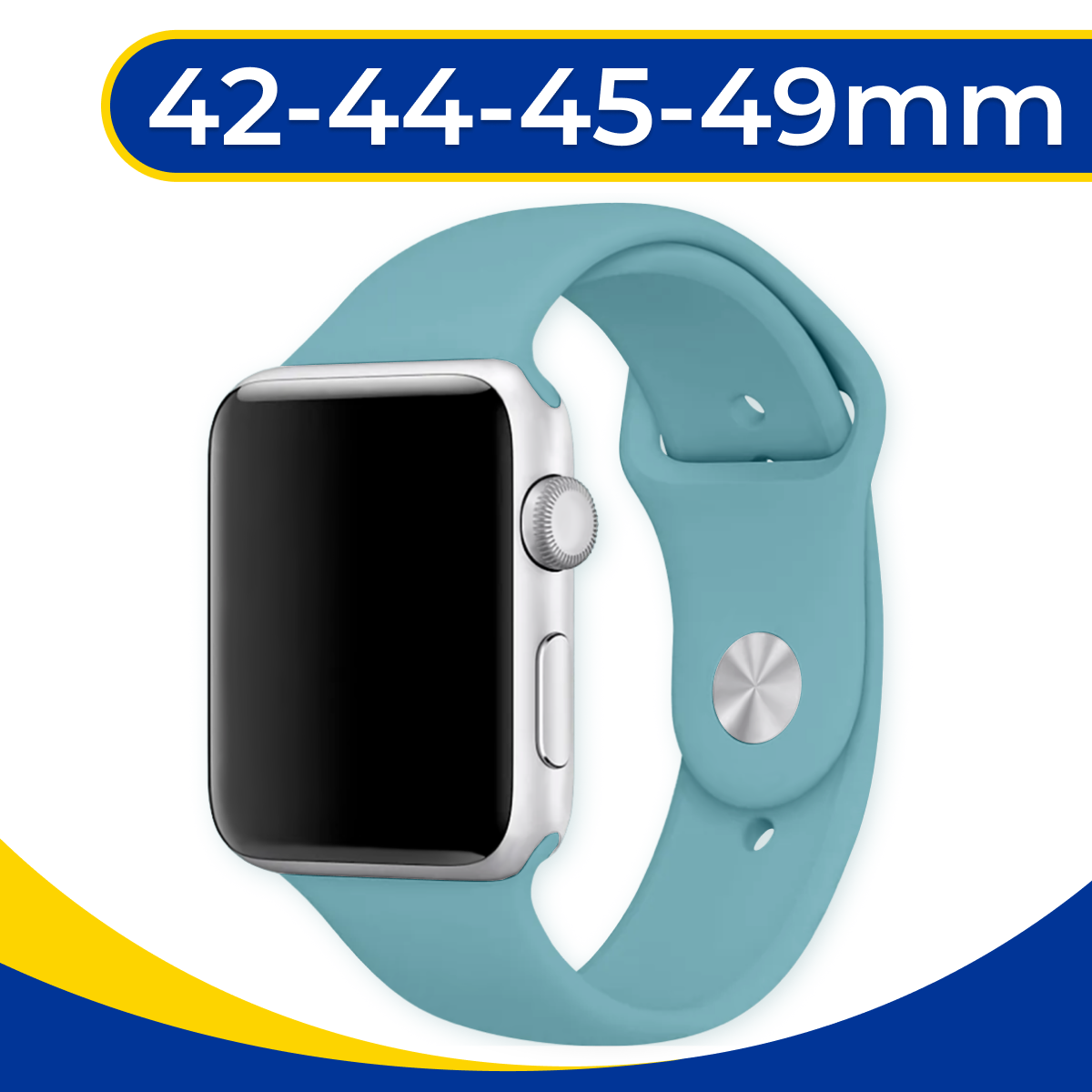 Силиконовый ремешок на Apple Watch 1-9, SE, Ultra 42-44-45-49 мм / Сменный браслет для смарт часов Эпл Вотч 1, 2, 3, 4, 5, 6, 7, 8, 9 и СЕ / Голубой 353 ₽ Подробнее