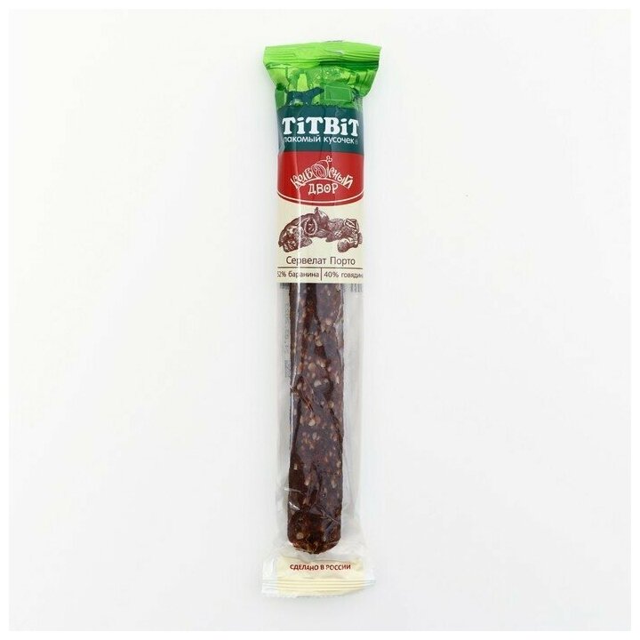Лучшие цены. Колбасный двор для собак TiTBiT– это линейка мясных лакомств, изготовленных с использованием качественных ингредиентов с учетом сбалансированного питания питомца. Подходят в качестве поощрения или побаловать своего любимца во время игры. Сервелат Порто приготовлен из баранины и говядины, дополнен орегано и укропом придавая вкусу изысканность. Это полезное и натуральное лакомство источник белка, Fe(железо), ферментов и витаминов группы «В», поддерживает здоровое пищеварение. Магазины в вашем городе.