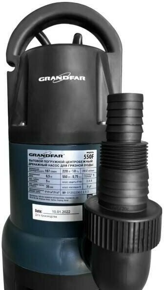Насос бытовой погружной центробежный дренажный Grandfar 550F, для грязной воды