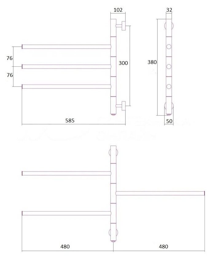 Полотенцесушители Поворотный электрический полотенцесушитель TERMO LUX E380-3ES