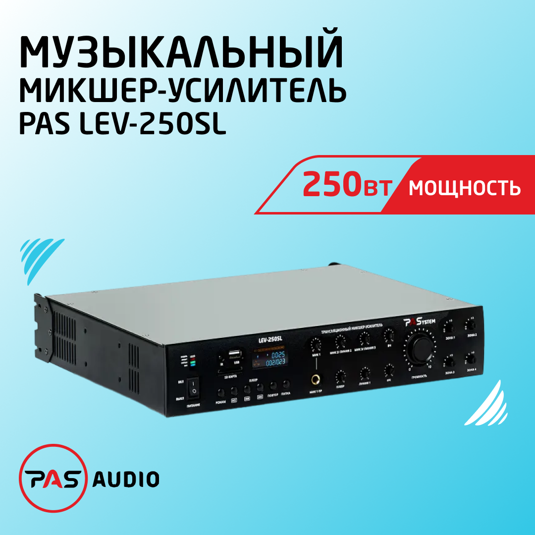 Усилитель Музыкальный трансляционный микшер-усилитель 250 вт 4 зоны с MP3-Bluetooth-FM плеером PASystem LEV-250SL
