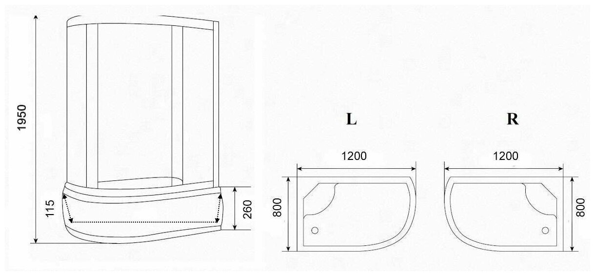 Душевые кабины Уголок ZFM1201R душевой PARLY с поддоном (120х80х195)