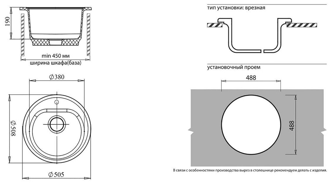 | Размеры врезного отверстия (накладная) | 490x490 мм |