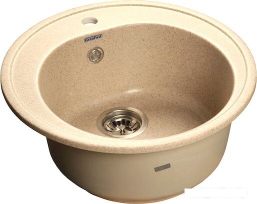 Мойка для кухни врезная каменная GranFest GF-R510, цвет песочный, круглая, 505х508х200 мм