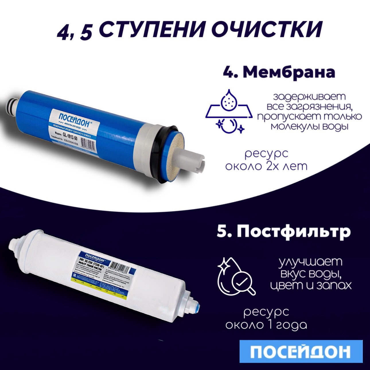Фильтры для воды Комплект картриджей ПОСЕЙДОН-ОСМО-5 сменные фильтры для системы обратный осмос