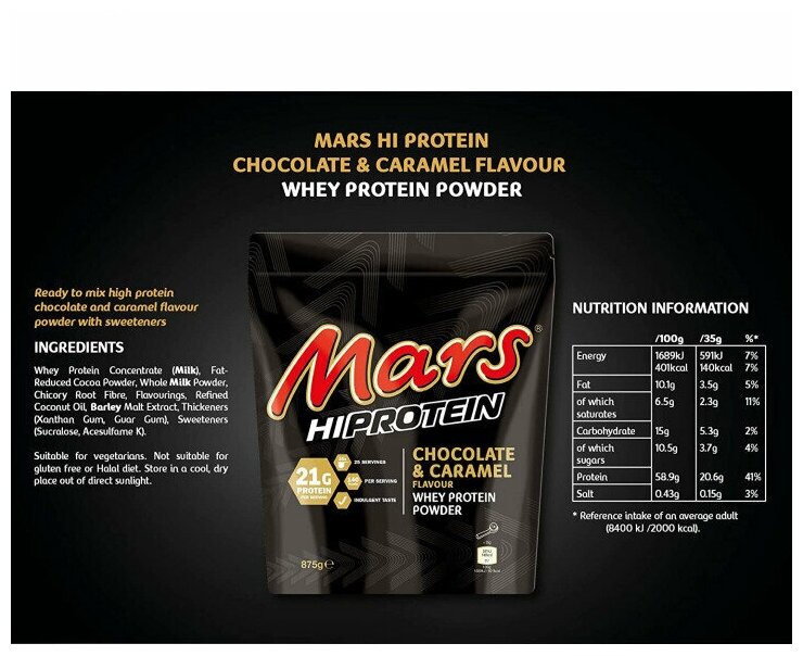 Лучшие цены. Mars Hi Protein Whey Powder позволяет подавить разрушительное действие катаболизма. Увеличивает количество белка в рационе питания. Специальная формула протеина способствует быстрому усвоению пищеварительной системой. Обладает высокой биологической и пищевой ценностью. Способствует укреплению иммунной системы, повышая защитные функции организма. Продукт обогащён витаминами, микроэлементами и минералами. В одной порции 21 грамм высококачественного протеина с мощным аминокислотным профилем. Магазины в вашем городе.