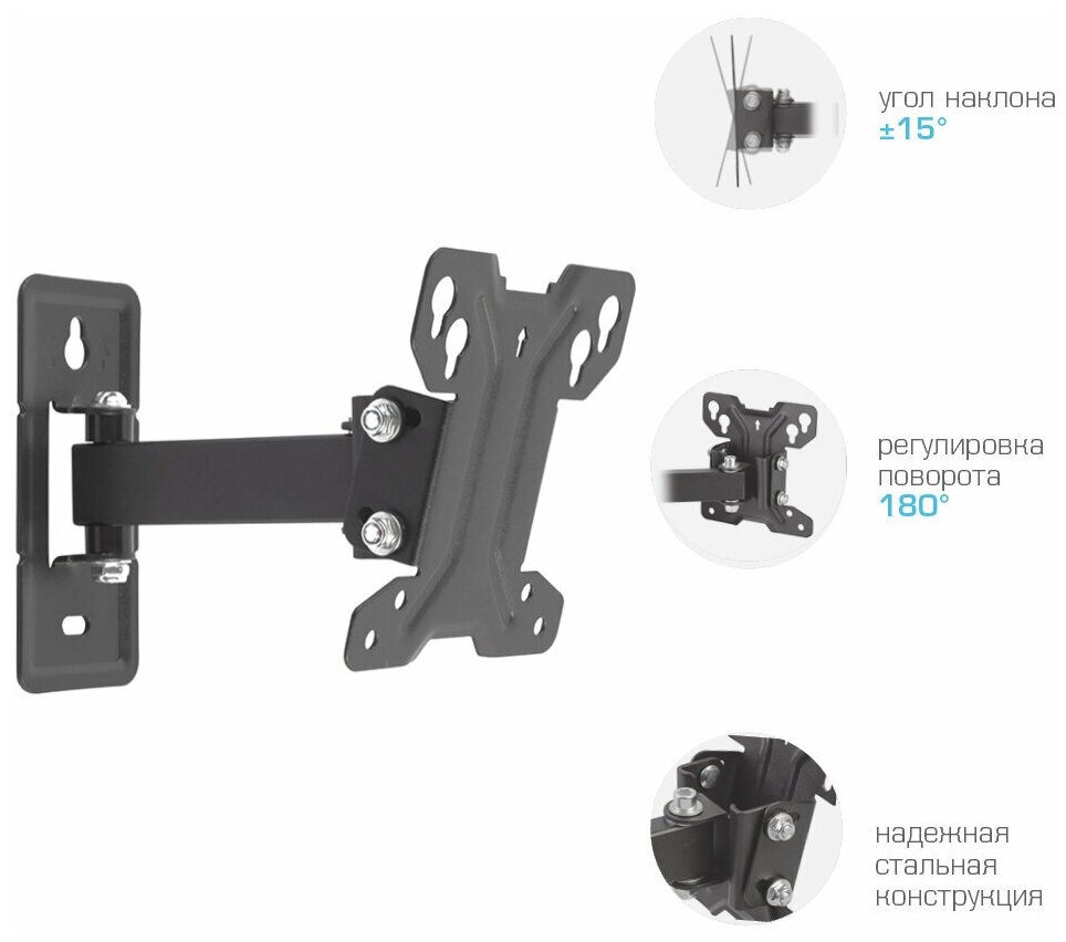 Настенный поворотно-наклонный кронштейн для телевизоров и мониторов с диагональю от 10 до 27 дюймов Tuarex Alta-108 1 250 ₽ Подробнее