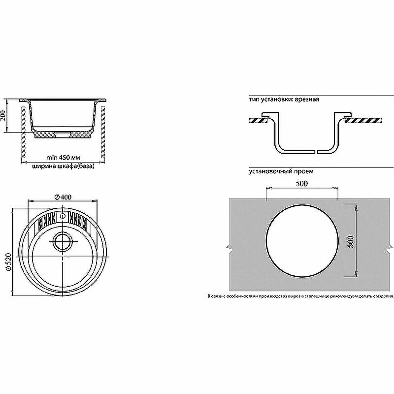 Мойка GRANFEST GF-R520 D =520 мм, круглая (топаз)