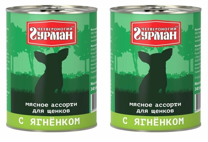 Корм для собак Четвероногий Гурман Корм консервированный для щенков Мясное ассорти с Ягненком, 340 г, 2 шт