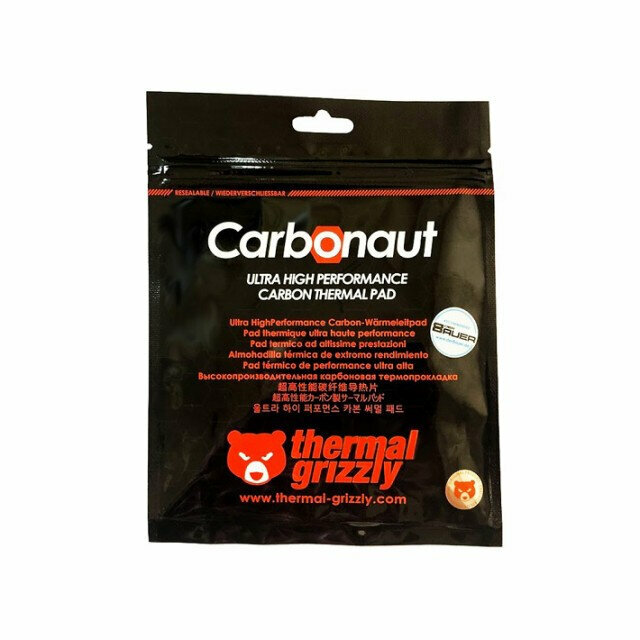Лучшие цены. Thermal Grizzly Carbonaut - термопрокладка из углеродного волокна. Специально рабработанный полимер обеспечивает гибкость и мягкость, необходимую для заполнения зазоров. Структура углеродного волокна обеспечивает превосходную теплопроводность. Thermal Grizzly Carbonaut лёгкая и многоразовая. Кроме того, Thermal Grizzly Carbonaut имеет очень высокую теплопроводность даже в случае очень низкого контактного давления. Эффективность теплообмена Thermal Grizzly Carbonaut всегда остаётся постоянной. Магазины в вашем городе.