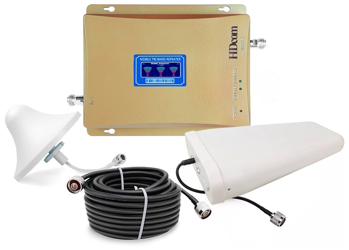 Усилитель Комплект усилитель сотовой связи и интернет сигнала HDcom GSMDCS (70GD-900-1800) - усиление сигнала GSM, 3G, 4G на площади до в подарочной упаковке