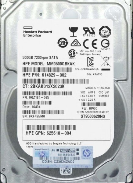 Жесткий диск Жесткий диск HP 500GB, 3G, SATA, 7.2K RPM, SFF, 2.5" 9RZ164-065
