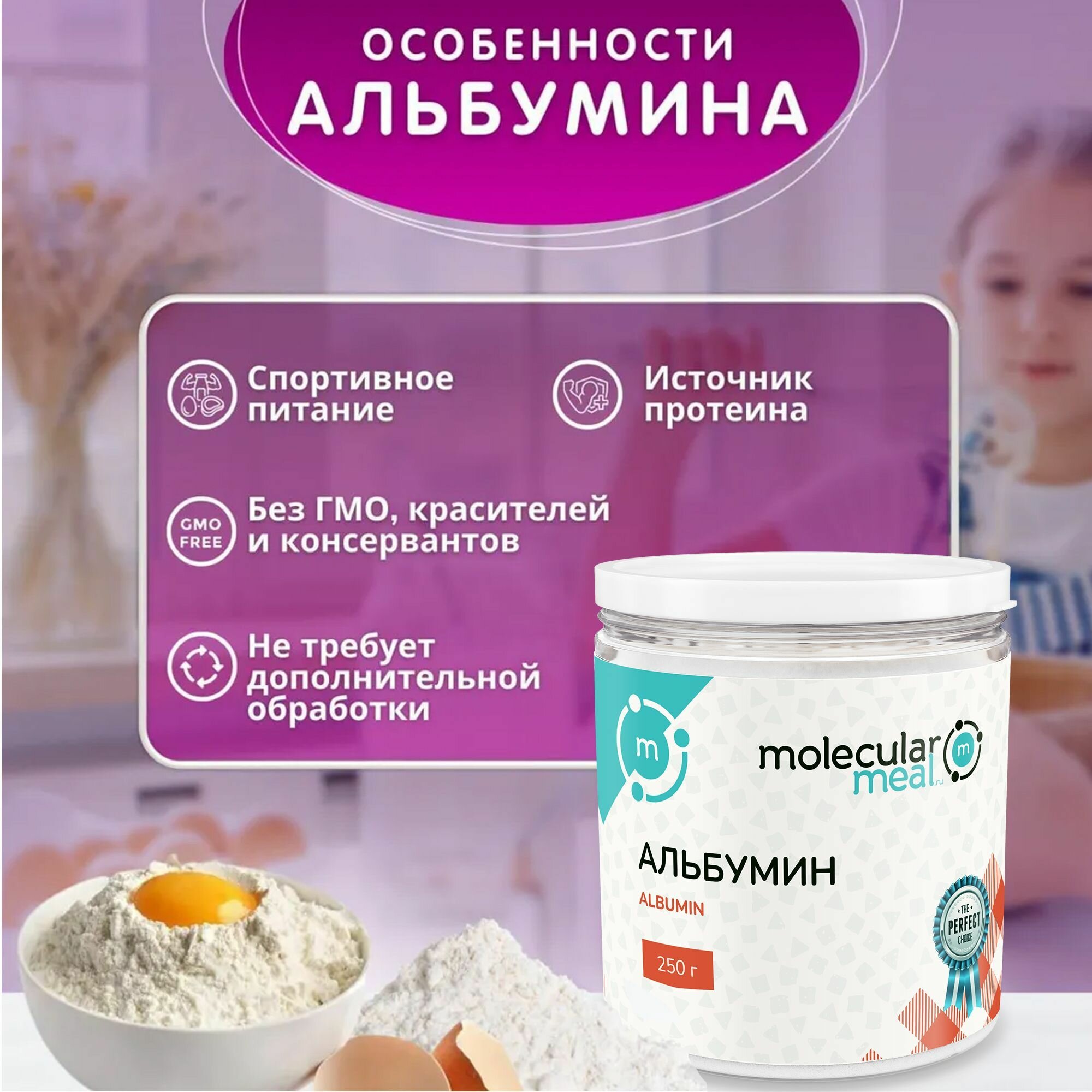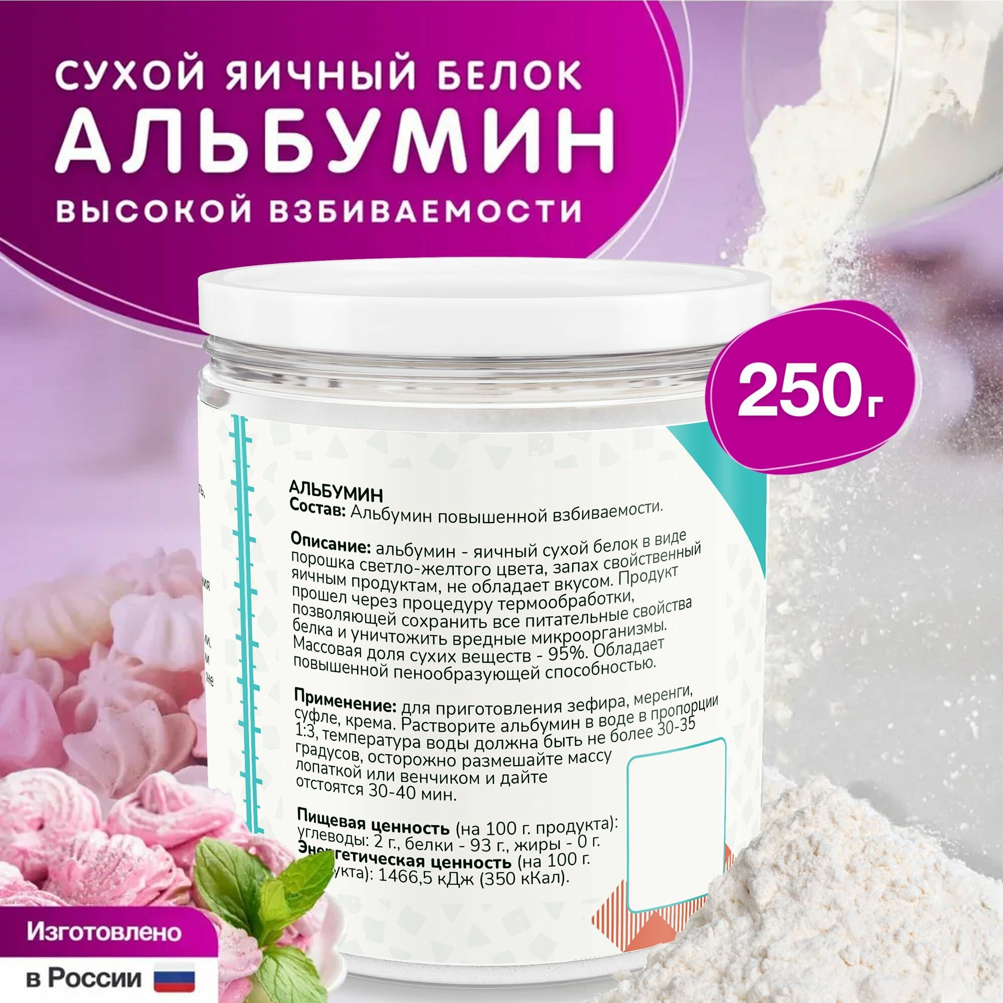 Протеин Альбумин кондитерский пищевой в порошке, сухой яичный белок, 250 г. Применяется для кремов, зефира, суфле, безе, пирожных.