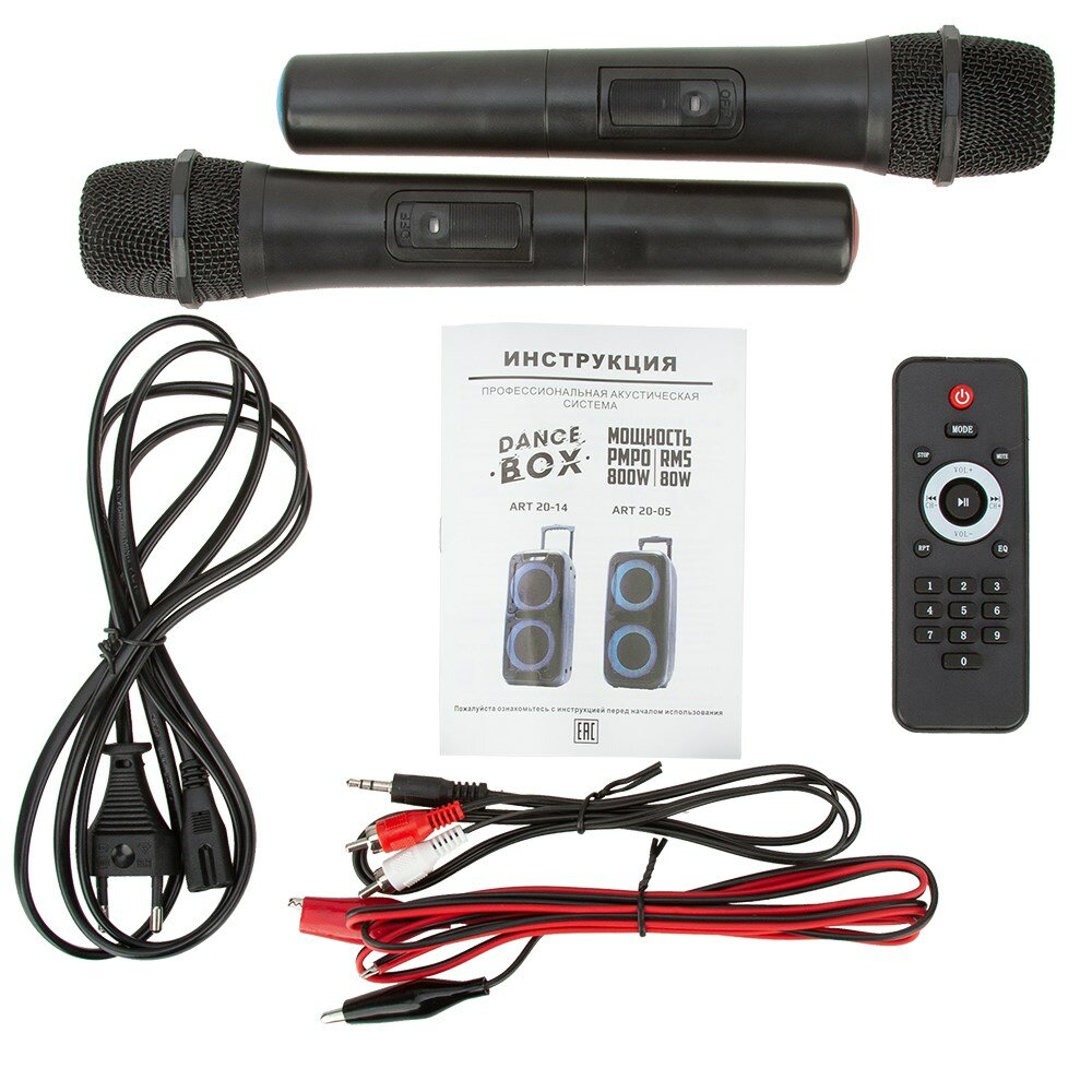 Лучшие цены. ELTRONIC 20-05 DANCE BOX 500 акустическая колонка 2*12" динамика 1*5" повторителя Режимы воспроизведения: - Bluetooth - Внешний накопитель - Aux - FM Мощность: - 800 Ватт PMPO - 80 Ватт RMS Питание: - Сеть 220V - Встроенный аккумулятор 7000 mAh (до 5 часов работы) Разъемы: - USB - SD и MicroSD - Jack 6.3 мм (микрофон, гитара) 2 шт. - Audio input 2х канальный Комплектация: - Микрофон беcпроводной 2 ш. Магазины в вашем городе.