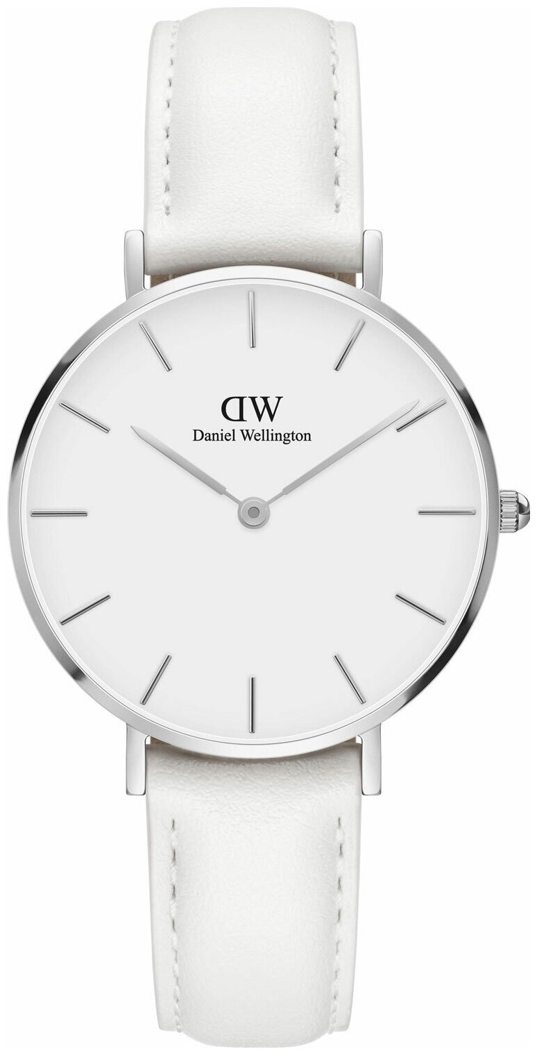 Лучшие цены. Кварцевые часы. Центральные часовая и минутная стрелки. Белый циферблат. Круглый корпус выполнен из полированной нержавеющей стали 316L. Диаметр корпуса составляет 32 мм, толщина 6 мм. Белый кожаный ремешок, ширина 14 мм, длина 145-185 мм, стандартная застежка. Прочное минеральное стекло устойчивое к мелким механическим повреждениям. Водостойкость WR 30 (брызги). Магазины в вашем городе.
