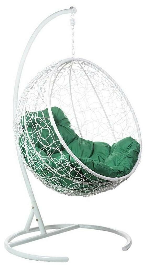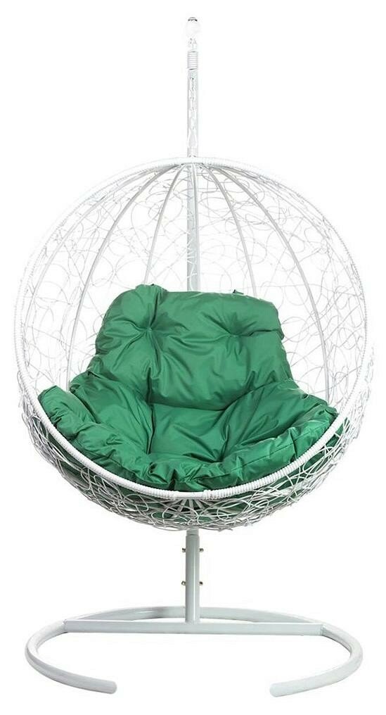 Кресло подвесное Bigarden "Kokos", белое, со стойкой, зеленая подушка (чехол в подарок)