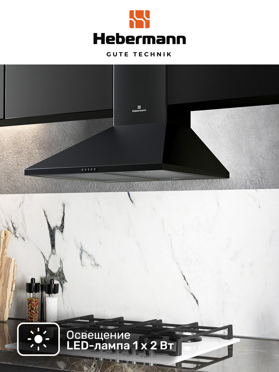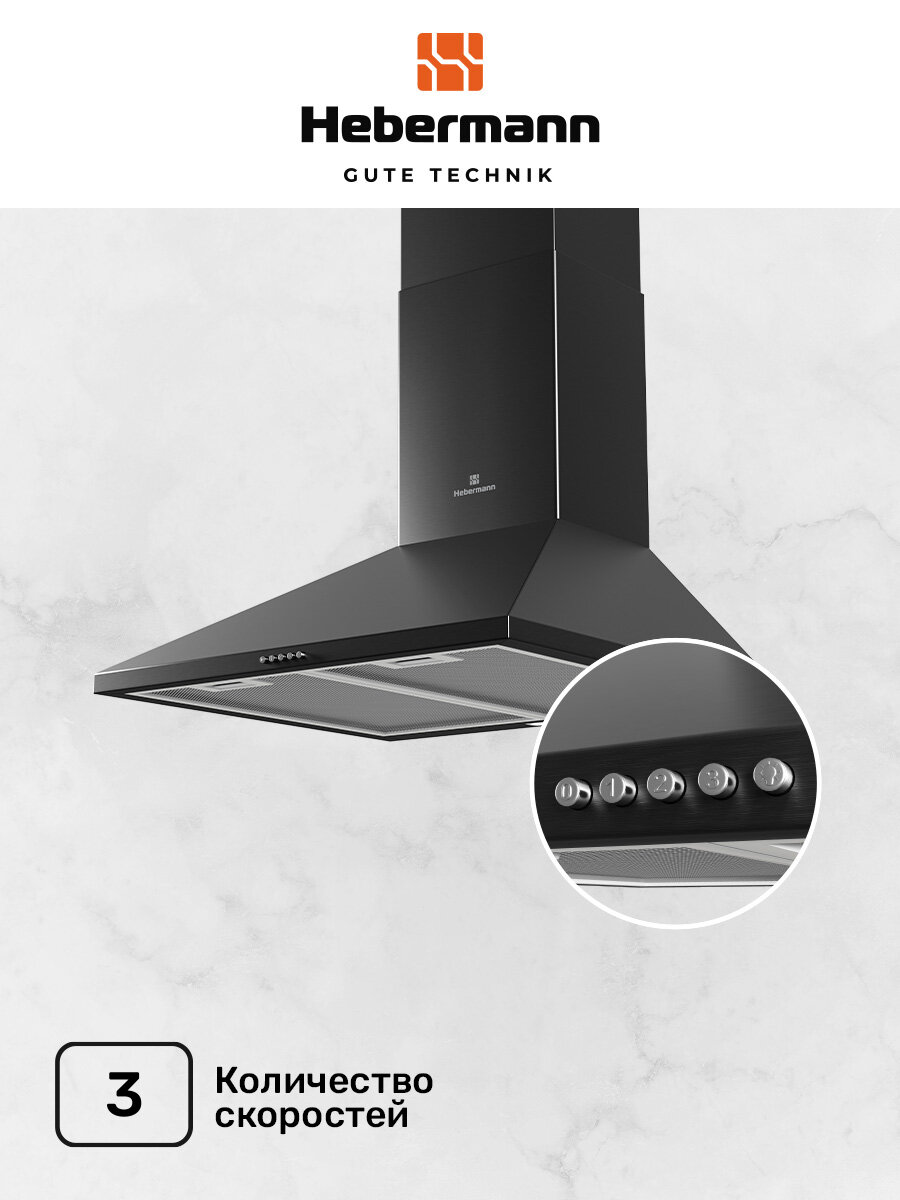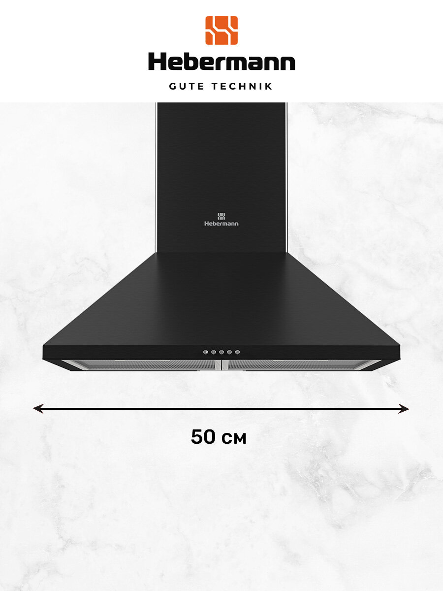 Вытяжка Кухонная вытяжка купольная HBWH 50.1 B, 50см, Отделка-окрашенная сталь, кнопочное управление, LED лампа, цвет-черный