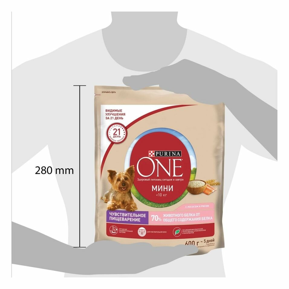 Сухой корм с лососем и рисом 600 гр Purina One Мини, чувствительное пищеварение, 1 шт