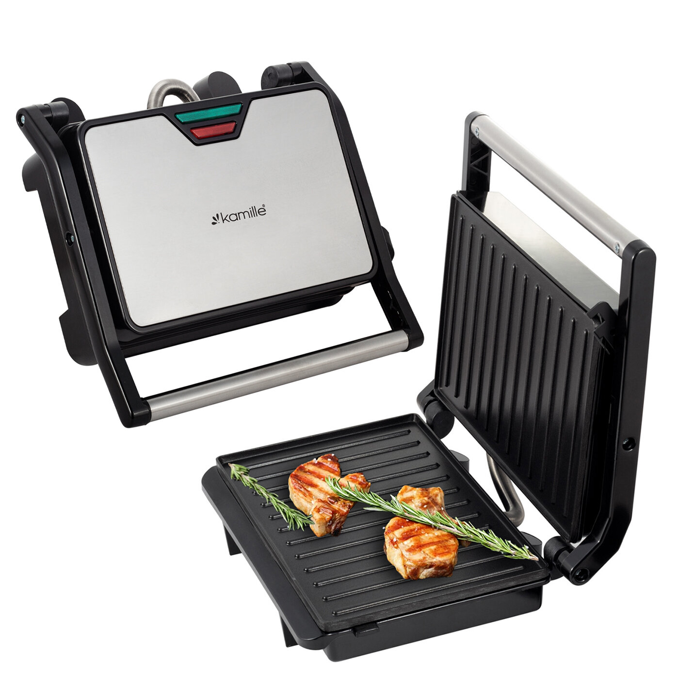 Электрогрили Гриль электрический 900 Вт. Kamille KM 6722 с антипригарным покрытием (серебристый)