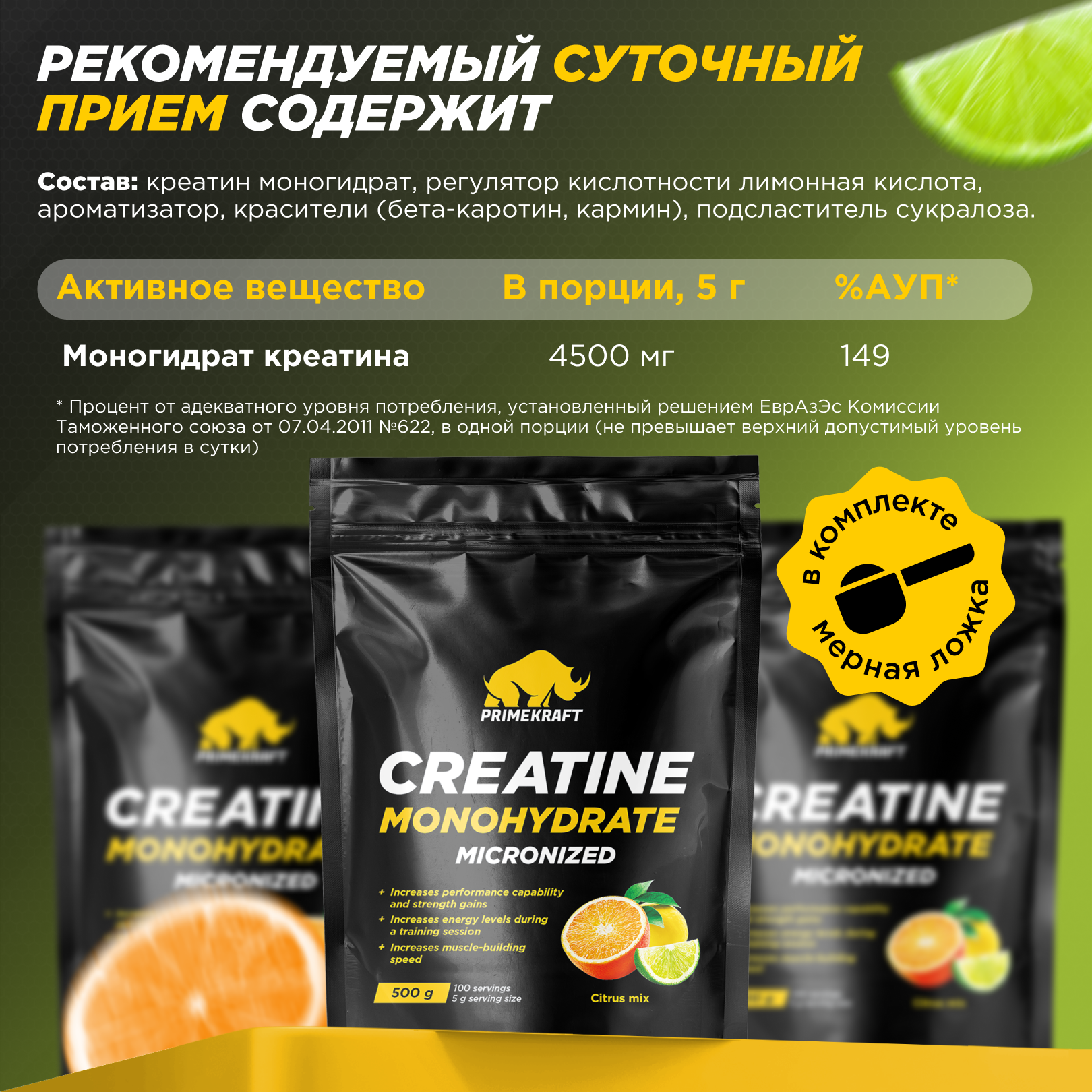 Креатин Креатин Моногидрат PRIMEKRAFT Creatine Monohydrate Micronized, citrus mix (цитрусовый микс), 500 гр / 100 порций