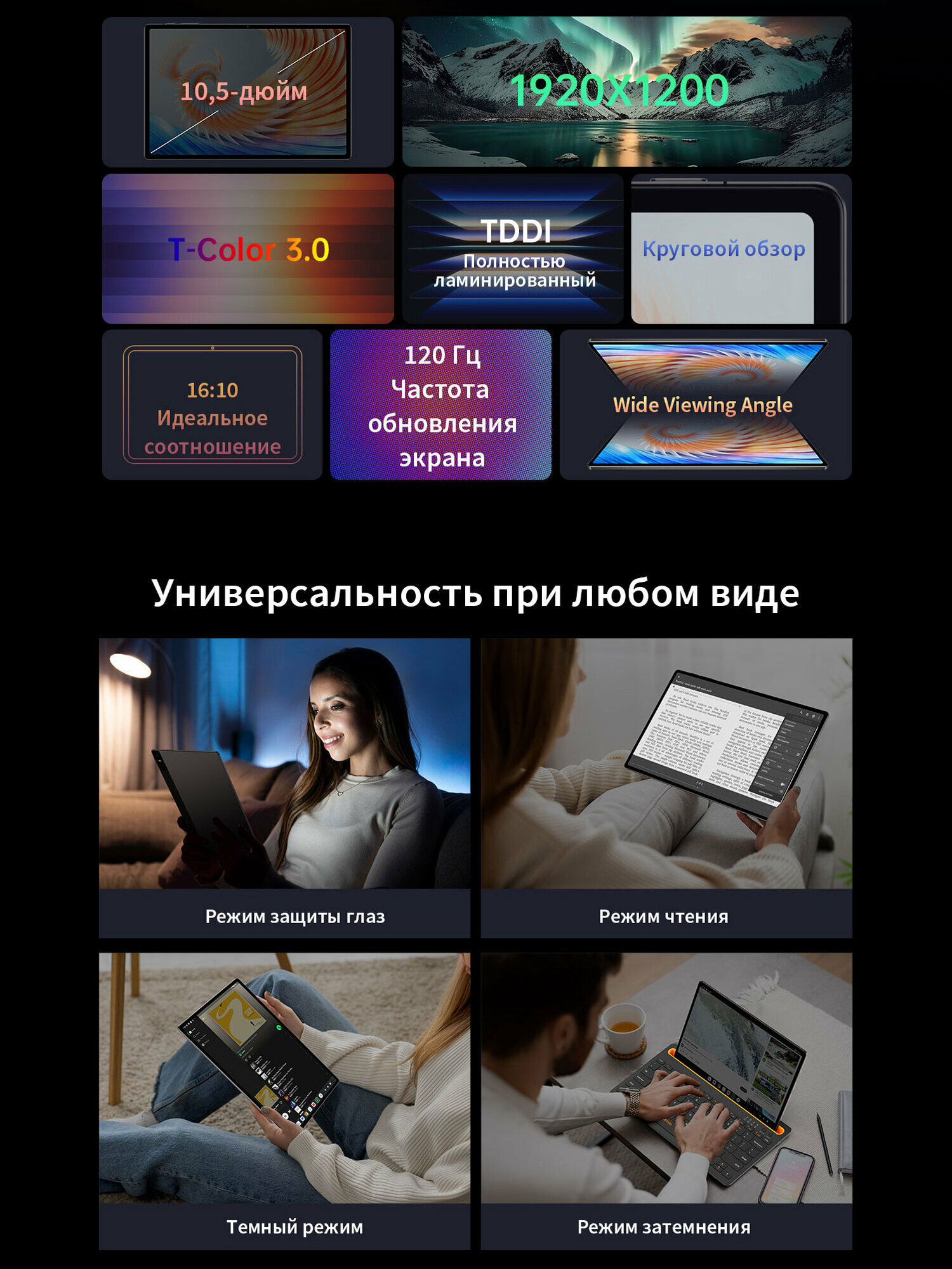 Лучшие цены. Бренд TECLAST Тип Планшетный компьютер Тип экрана IPS Разрешение экрана по вертикали 1200 Объем оперативной памяти 8192 Объем встроенной памяти 128 Поддержка карт памяти microSD Максимальный объем карт памяти 1024 Поддержка технологии Wi-Fi ДА Стандарт Wi-Fi 802.11 a/b/g/n/ac Поддержка технологии Bluetooth ДА Версия Bluetooth v5.0 Разрешение основной камеры 13 Разрешение фронтальной камеры 5 Встроенный модуль GPS ДА Цвет серый Сенсорный экран Multitouch ДА Число ядер процессора восьмиядерный Модель T45. Магазины в вашем городе.