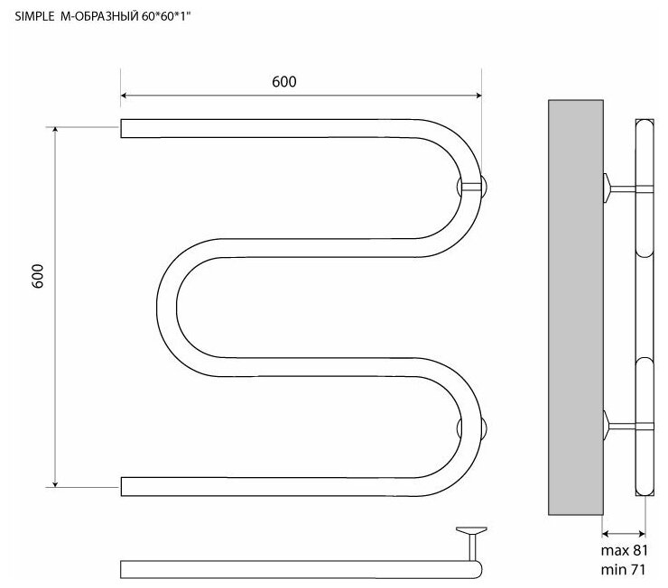 Полотенцесушители Полотенцесушитель водяной из нержавеющей стали Simple М образный 600*600мм 1" Melodia della Vita
