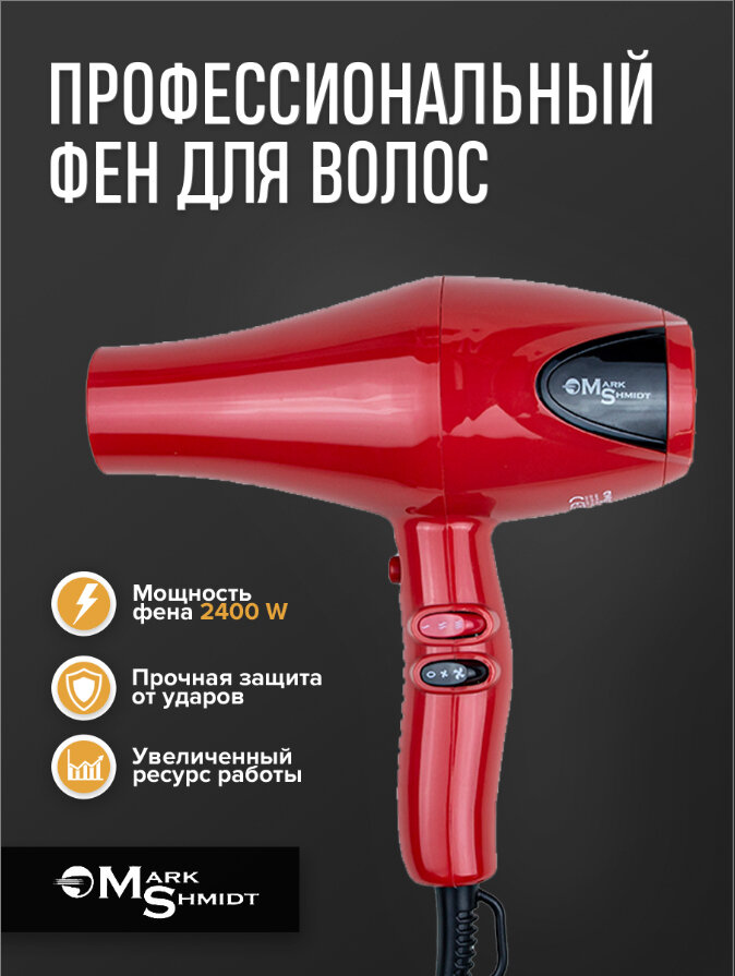 Фен MARK SHMIDT Фен для волос красный 2400W арт.MS8828 RED